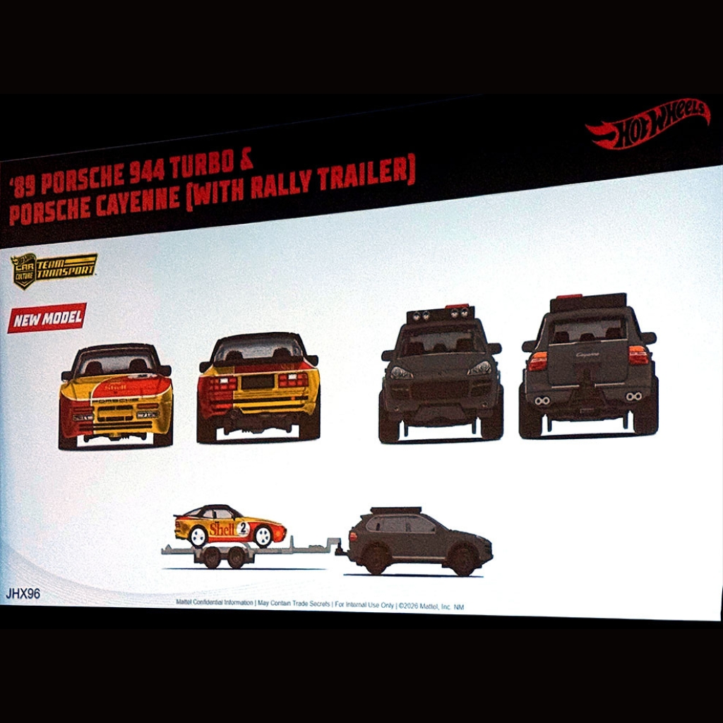 **PRE-ORDER** Hot Wheels 1:64 – ’89 Porsche 944 Turbo + Porsche Cayenne (con Rally Trailer) – Team Transport – 2026 Mix 4